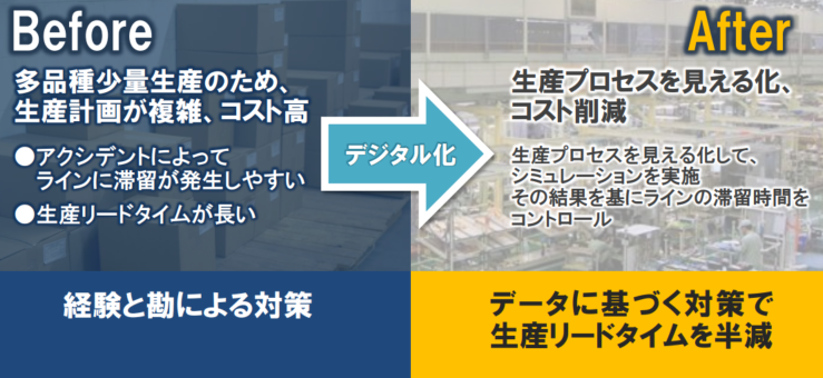 また、別の例では日立の製造現場で高効率な製造の取組として以下のようなDX化も行われております。