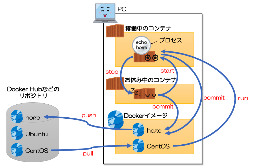 ここからは先のライフサイクルを元に、色々なDockerの基本的な操作を紹介します。